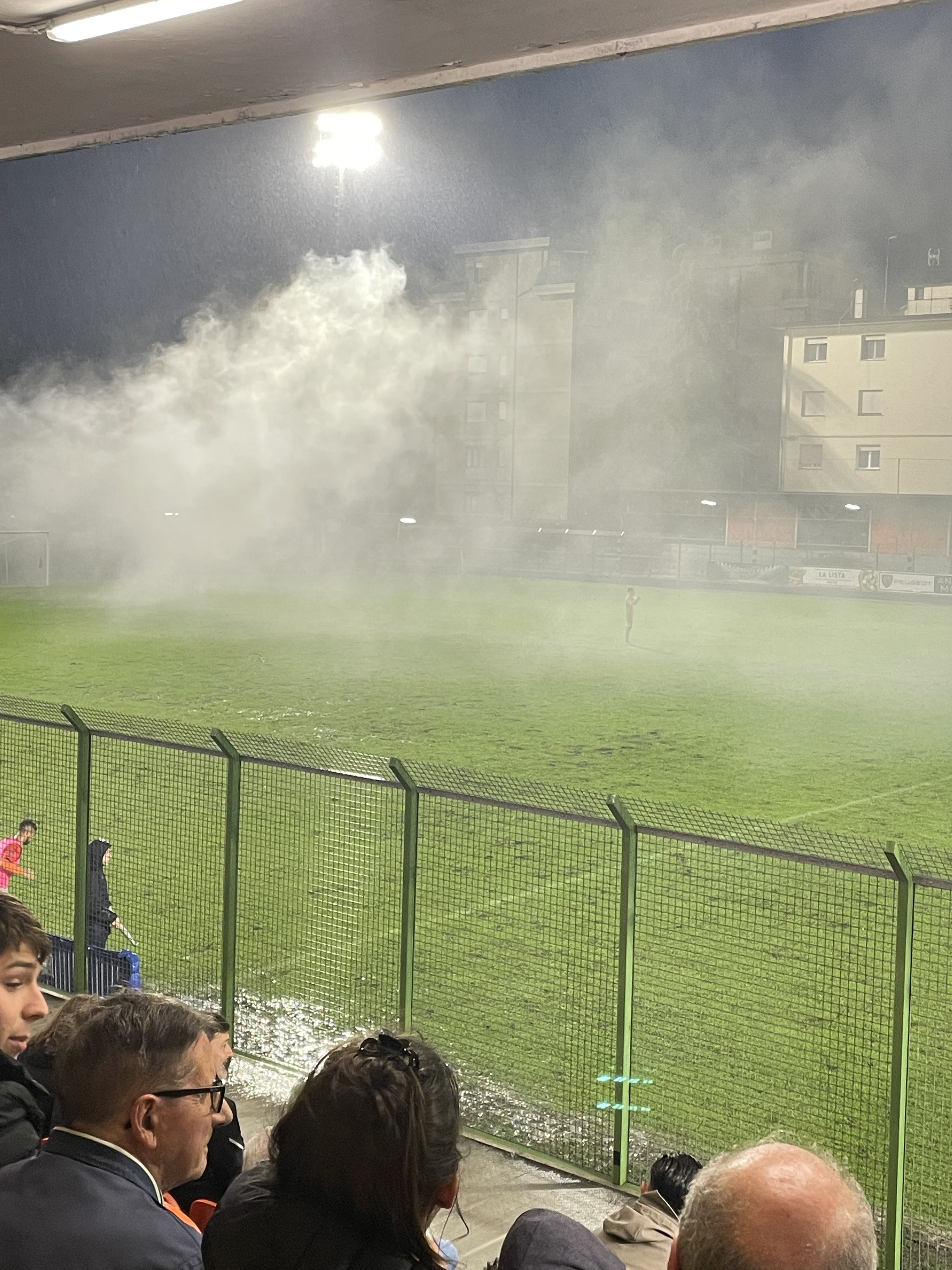 La pioggia si intensifica e non accenna a smettere, il campo ne risente e si appesantisce ancor di più tanto che iniziano a formarsi delle pozzanghere che rallentano la velocità della palla. Il gioco palla a terra è compromesso e il Mestre ne trae svantaggio. Infatti è il Dolomiti a fare la partita e a sfiorare l’occasione del raddoppio al 47′ con Tardivo che, su sponda di Marangon, calcia sul fondo sfiorando il palo. Il Mestre pare spento e irriconoscibile rispetto alla prestazione offerta nella prima frazione: le azioni sono confuse e i reparti sembrano slegati fra loro cosa che rende difficile il fraseggio. Il Dolomiti non rimane a guardare e ne approfitta per mettere a segno il goal del raddoppio al 55′: un irresistibile Marangon va via sulla fascia saltando il diretto marcatore, mette sul secondo palo un cross basso che supera tutta l’area e che trova libero Masut il quale non sbaglia e segna. Da qui in poi il Dolomiti Bellunesi controlla la gara e rischia solamente quando Parlato devia in angolo il cross di Marcandella, rischiando di farsi autogoal. Anzi il la truppa di Zanini ha più volte la possibilità di segnare il terzo goal: prima con il colpo di testa Alcides che viene neutralizzato dal riflesso di Cortese, ma sulla respinta corta si avventa Chiesa che calcia a botta sicura, ma viene murato da un difensore mestrino che poi spazza, poi con Diallo che non sfrutta un mezzo pasticcio di Cortese e che manda sul fondo una ghiottissima occasione. Il triplice fischio sancisce la fine della partita: il Mestre esce sconfitto, ma si prende comunque gli applausi dei propri tifosi e dei propri ultras mentre il Dolomiti Bellunesi guadagna altri tre punti che gli permettono di restare attaccato alla testa della classifica.
